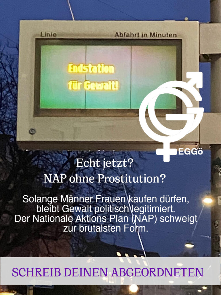 Österreich gehört gemeinsam mit Deutschland und der Schweiz zum „Bordell Europas“. Der „NAP“ wäre die Gelegenheit gewesen, diesen Zustand endlich nicht länger hinzunehmen und den internationalen Entwicklungen, Empfehlungen und Aufforderungen zu folgen. Stattdessen ignoriert die Bundesregierung vollkommen, dass sich die ‚alltägliche‘ Herabwürdigung von Prostituierten und das Akzeptieren von Gewalt in der Prostitution auf ALLE Frauen auswirkt. Wo Männer Frauen kaufen dürfen, werden Frauen insgesamt zur Ware degradiert.